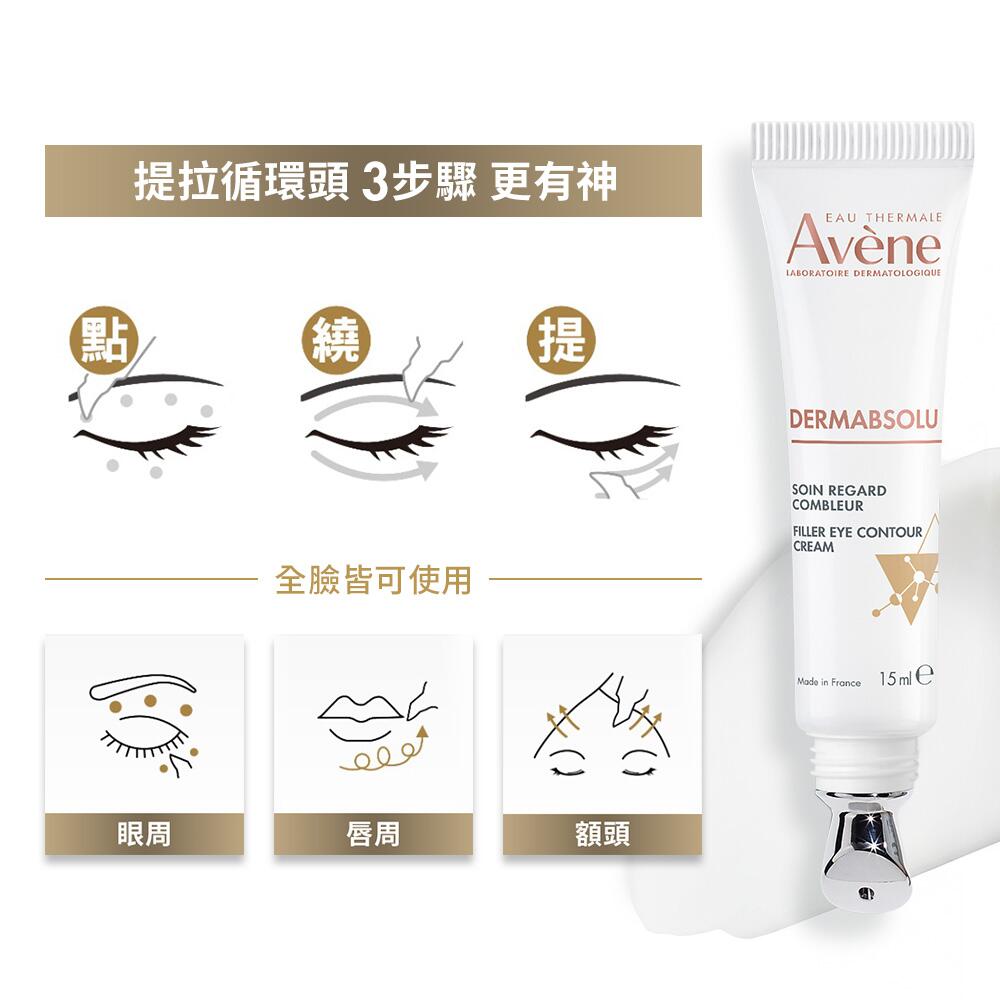 金屬按摩頭貼合眼型設計,每日點、繞、提3步驟塗抹按摩,幫助舒緩眼周肌膚。